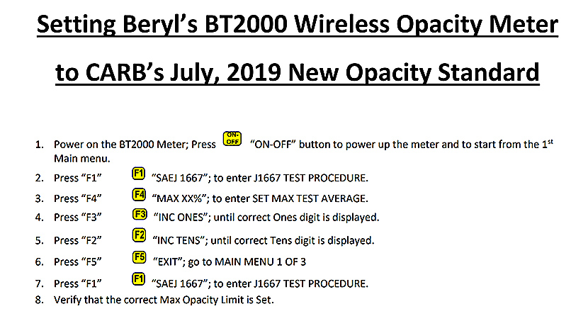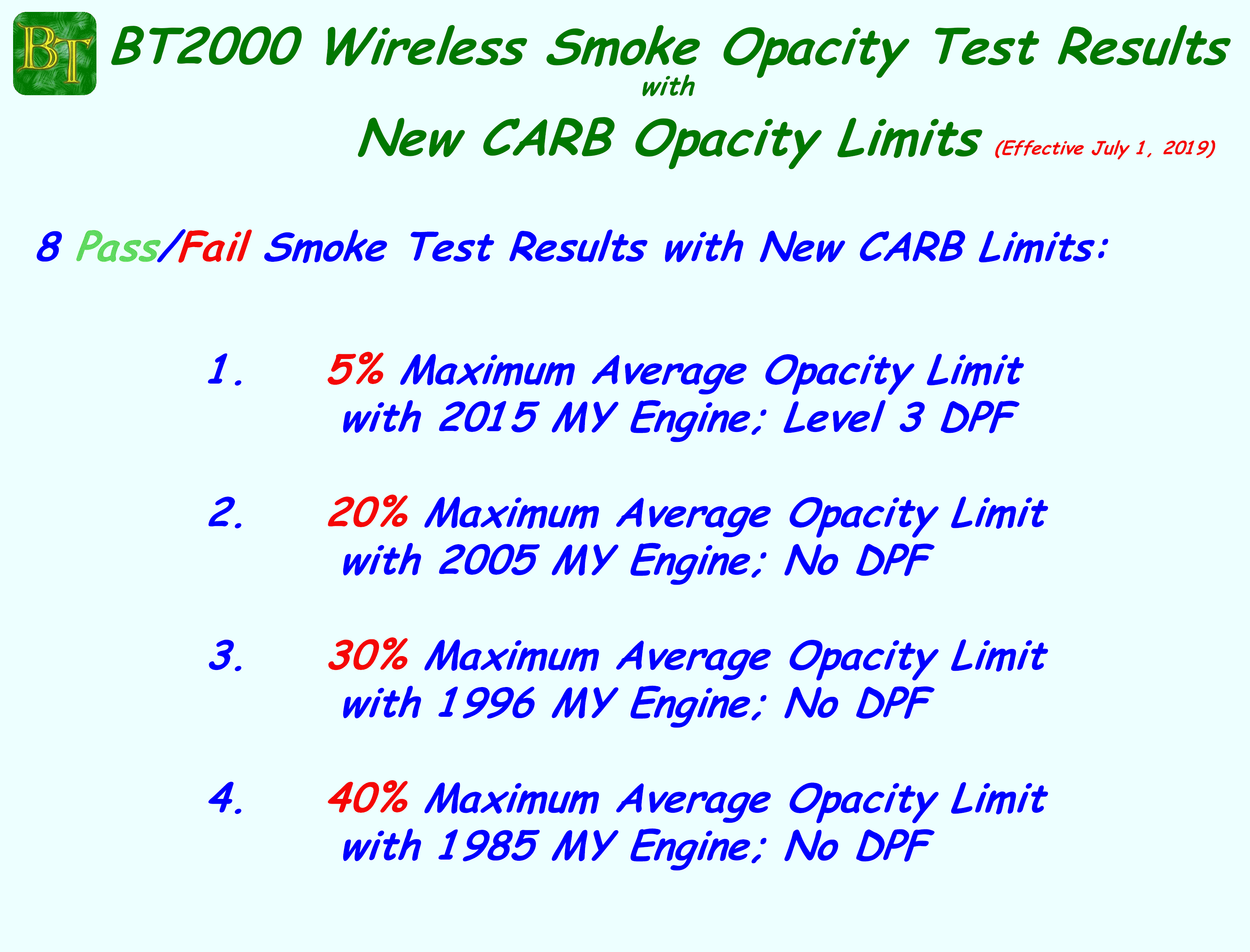 CARB's New Opacity Limits BT2000 Wireless with New CARB  Limits Click to Enlarge